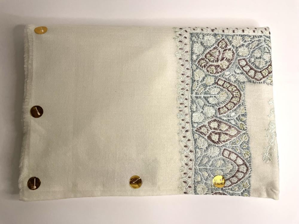 شال كشميري فاخر بحياكة يدوية بالكامل من الصوف الطبيعي 100% يتميز بنعومته الفائقة ، دفئه المثالي وتصاميمه التي تعكس جمال الحرف اليدوية الأصيلة ، قطعة تمثّل الفخامة والرّقي لتكمل أناقتك في كل مناسبة